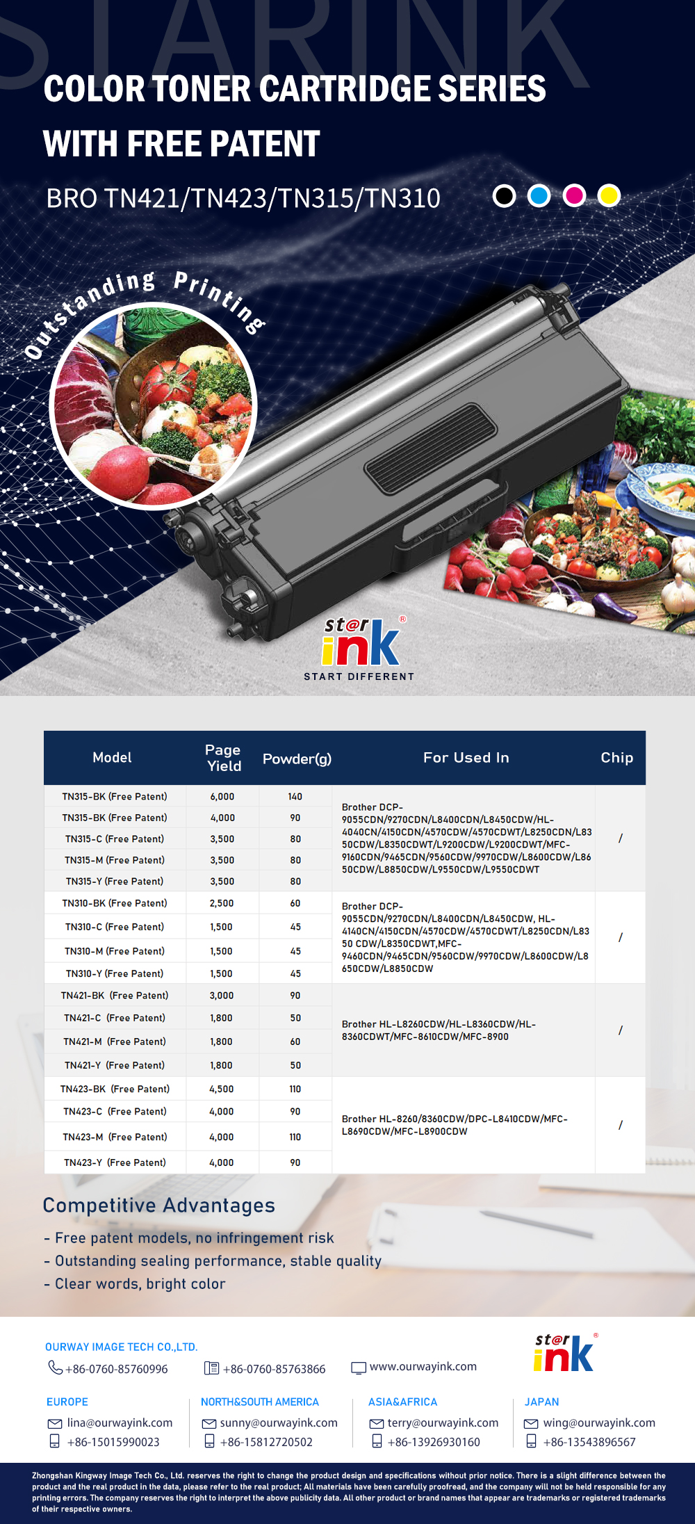 Starink BRO TN421/TN423/TN315/TN310 series with Free Patent