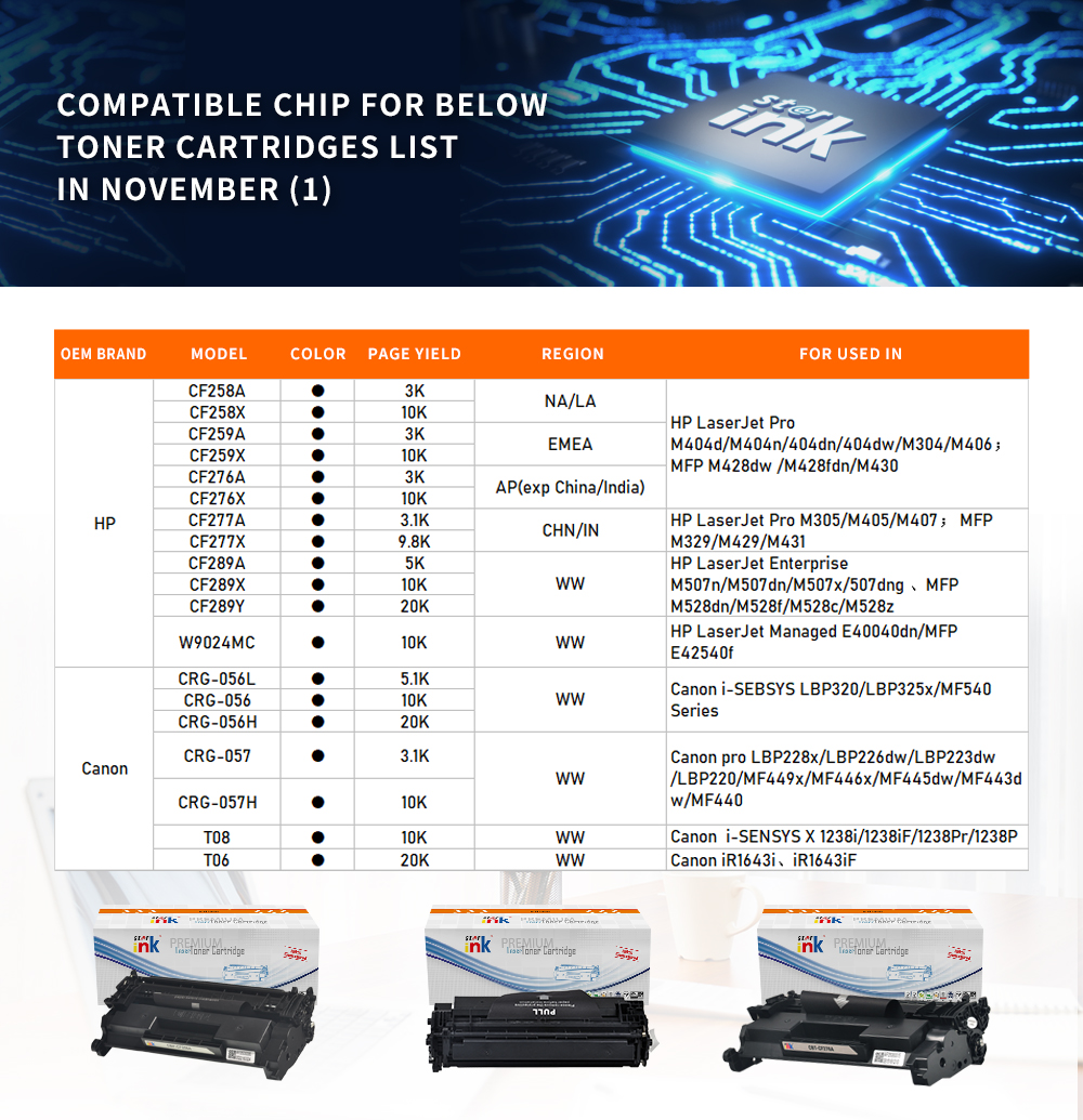 Lastest compatible chips with Starink black toner cartridges in Nov.