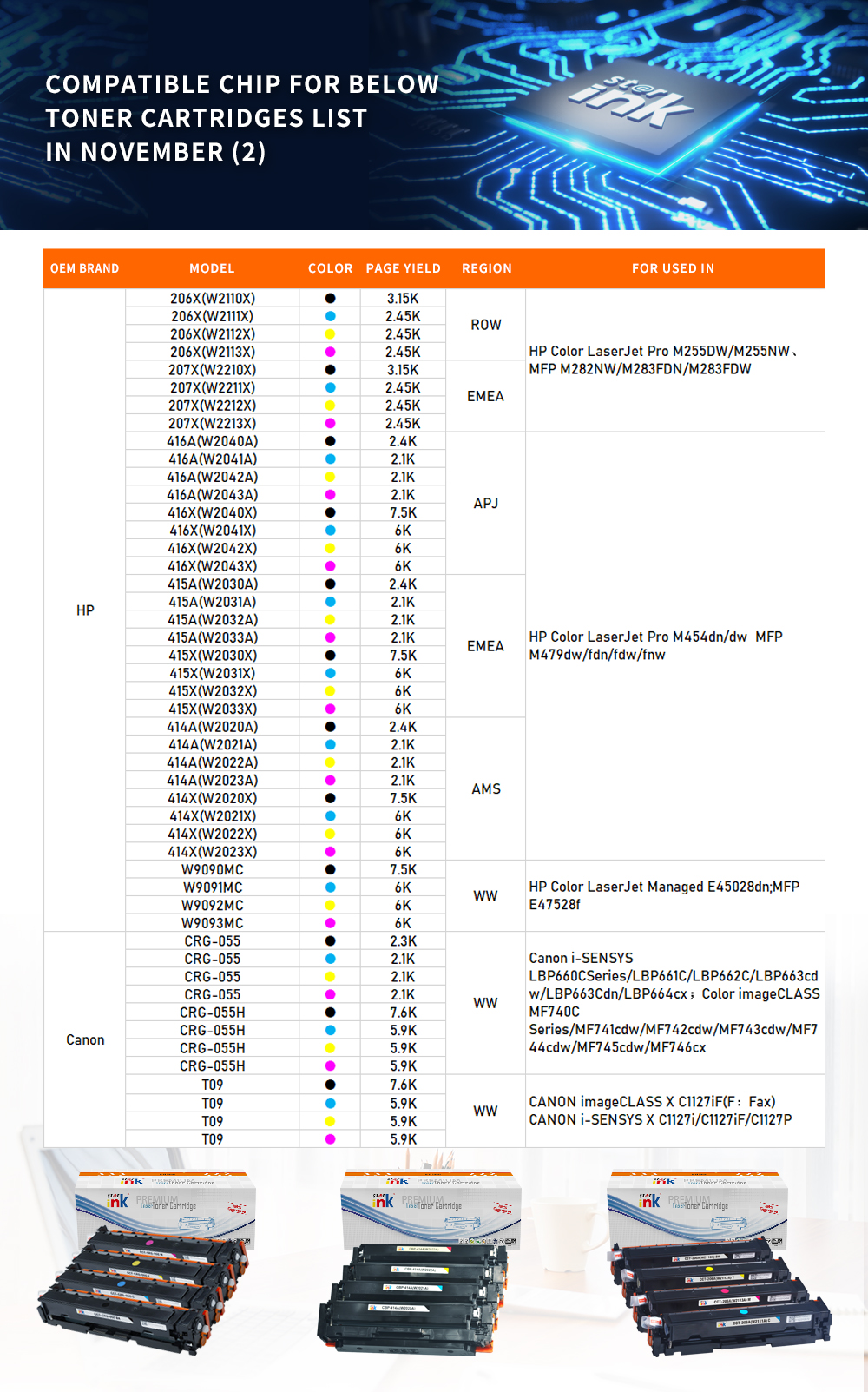 Lastest compatible chips with Starink colour toner cartridges in Nov.