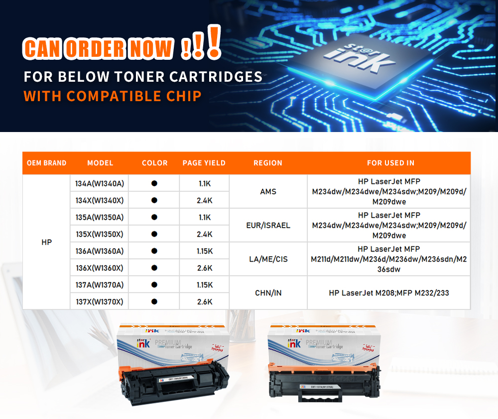 Starink Compatible Chips with 134/135/136/137 toner cartridges