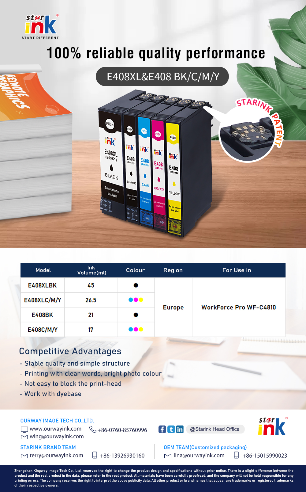 Starink E408/408XL ink cartridges series with patent-evading