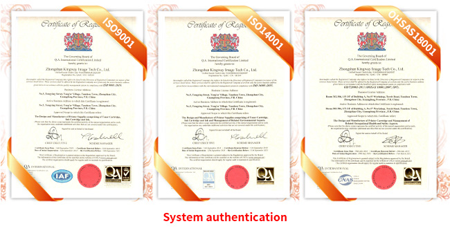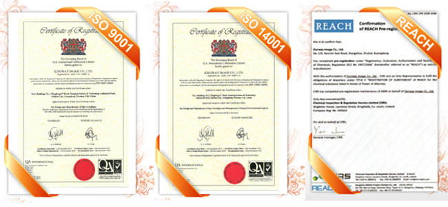 After years of development, we have established an efficient system for R&D and production.We have invested large amount in introducing and importing advanced technology and equipment worldwide, and personally participate in the mold design, production and development for inkjet cartridge, toner cartridge series of products with good accomplishment. The products refilled by our factory are with stable and durable quality. All of our products are strictly in accordance with the standard and request of ISO 9001 and ISO 14001.